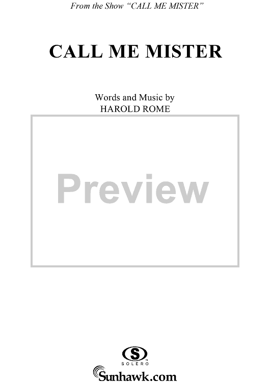 "Call Me Mister" Sheet Music by Harold Rome