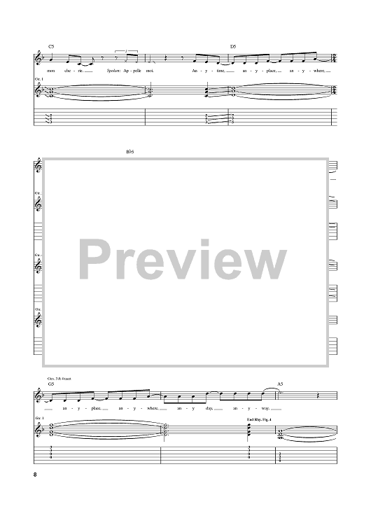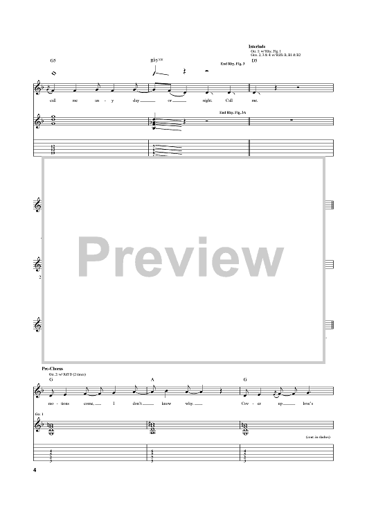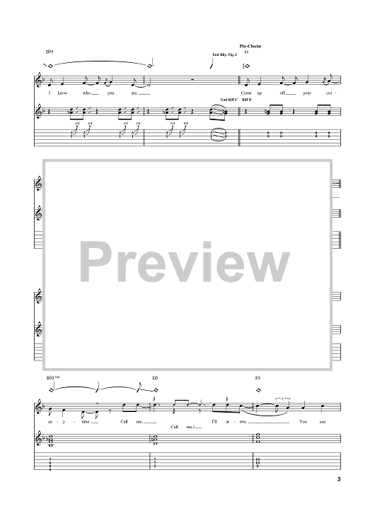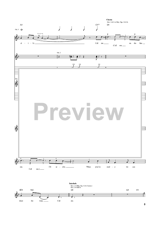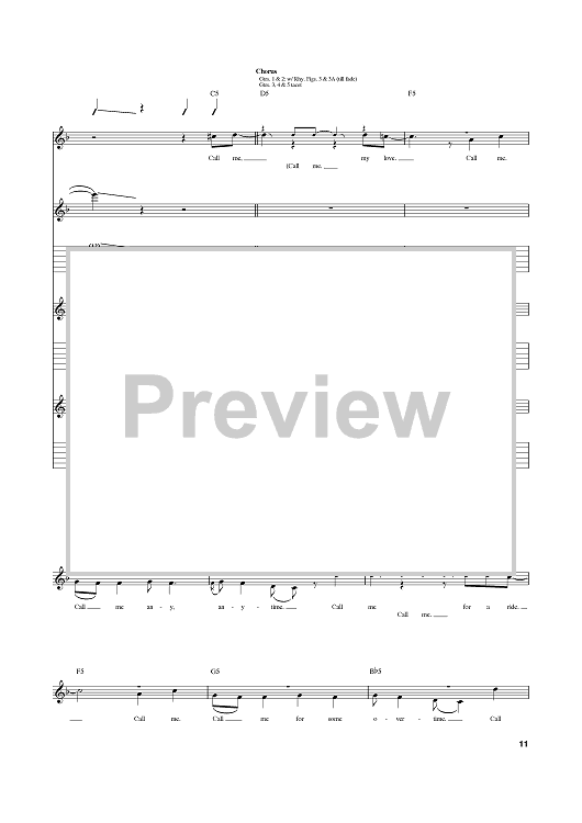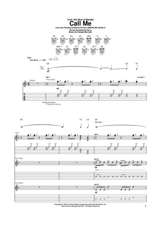 Digital Sheet Music for Call Me by Blondie, Giorgio Moroder, Deborah Harry scored for Guitar Tab; id:374464