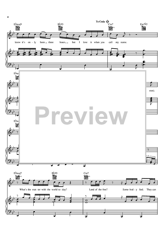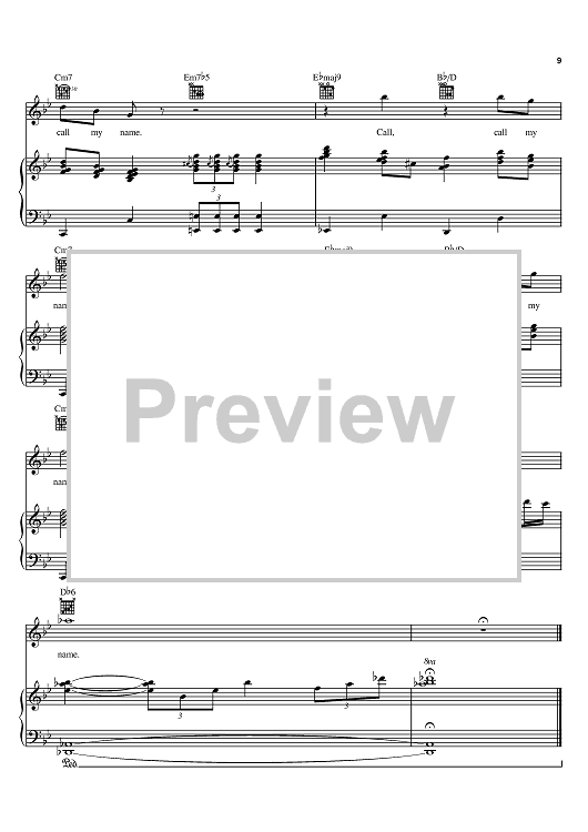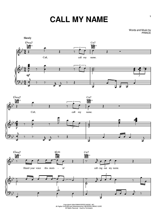 Digital Sheet Music for Call My Name by Prince scored for Piano/Vocal/Chords; id:389694