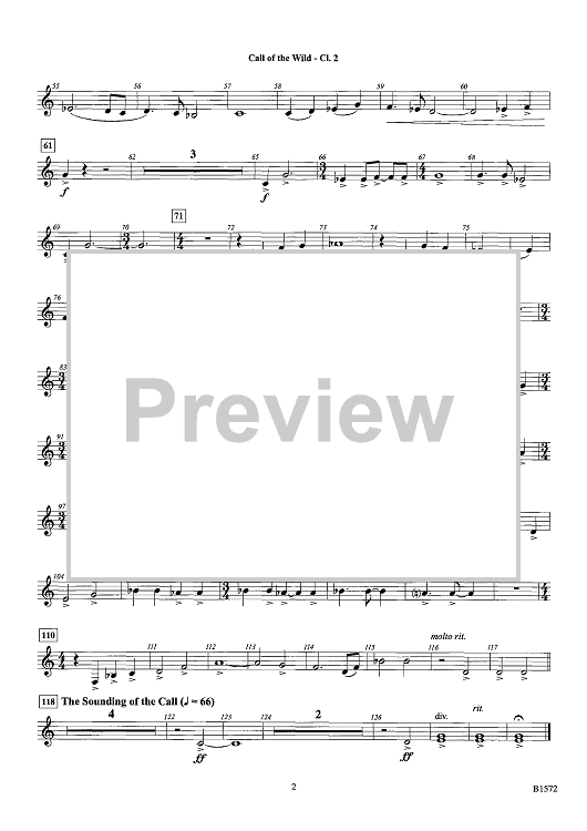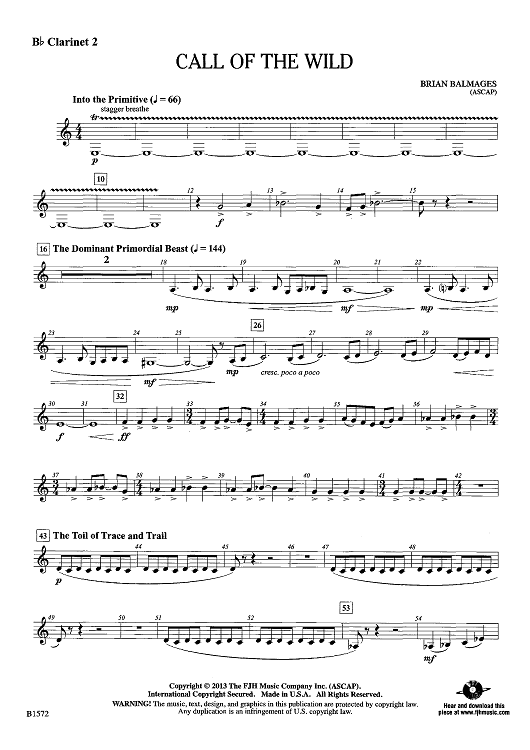 Digital Sheet Music for Call of the Wild - Bb Clarinet 2 by Brian Balmages scored for Concert Band; id:442237