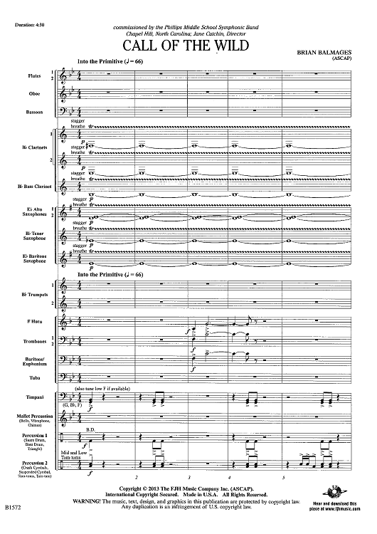 Digital Sheet Music for Call of the Wild - Score by Brian Balmages scored for Concert Band; id:442230