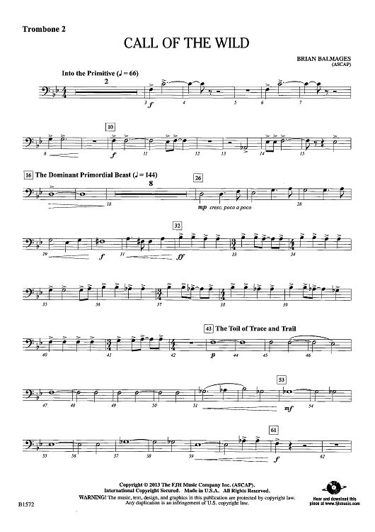 Digital Sheet Music for Call of the Wild - Trombone 2 by Brian Balmages scored for Concert Band; id:442247