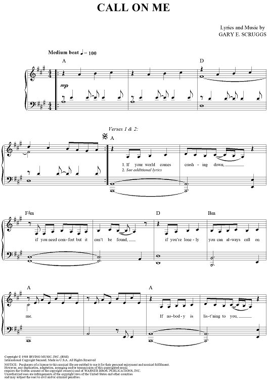 Digital Sheet Music for Call On Me by Tanya Tucker, Gary E. Scruggs scored for Piano/Vocal/Chords; id:257164