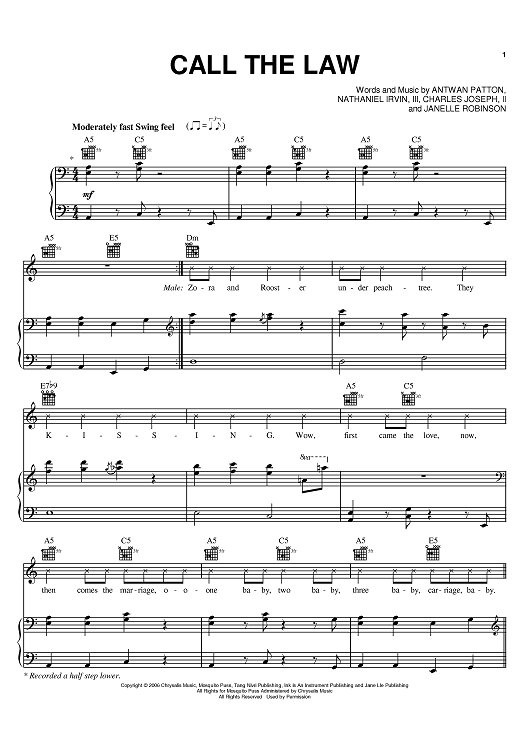 Digital Sheet Music for Call The Law by Big Boi, OutKast, Nathaniel Irvin III, Charles Joseph II, Janelle Robinson scored for Piano/Vocal/Chords; id:396060