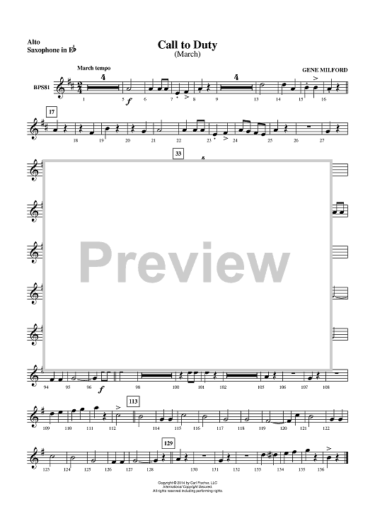 "Call to Duty (March) - Alto Sax" Sheet Music by Gene Milford