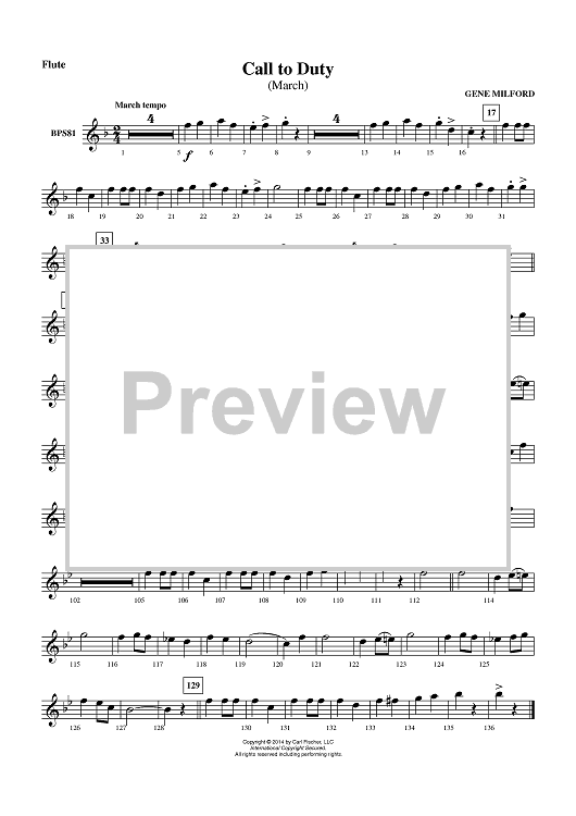Digital Sheet Music for Call to Duty (March) - Flute by Gene Milford scored for Concert Band; id:450678