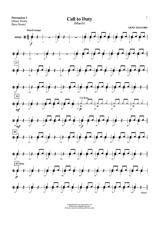 "Call to Duty (March) - Percussion 1" Sheet Music by Gene Milford