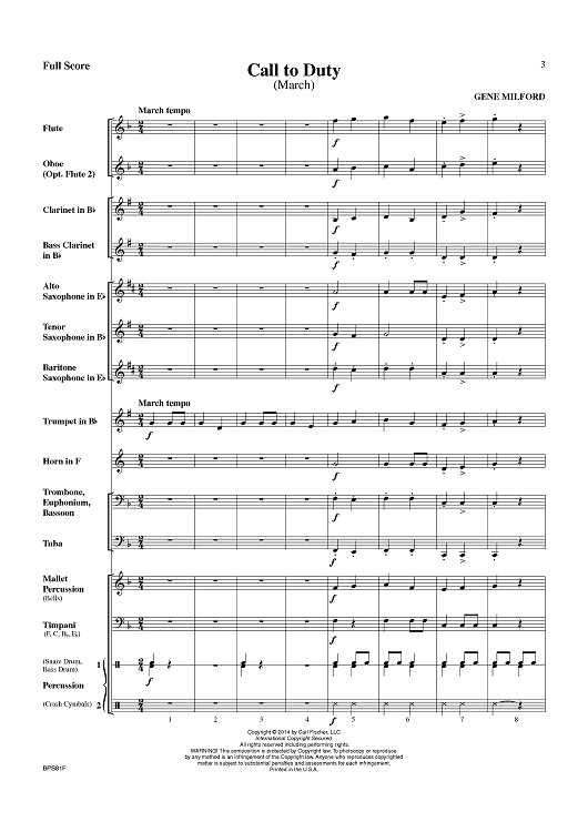 "Call to Duty (March) - Score" Sheet Music by Gene Milford