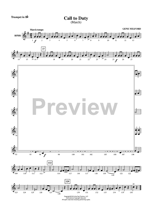 "Call to Duty (March) - Trumpet in Bb" Sheet Music by Gene Milford