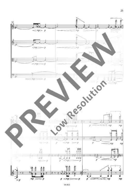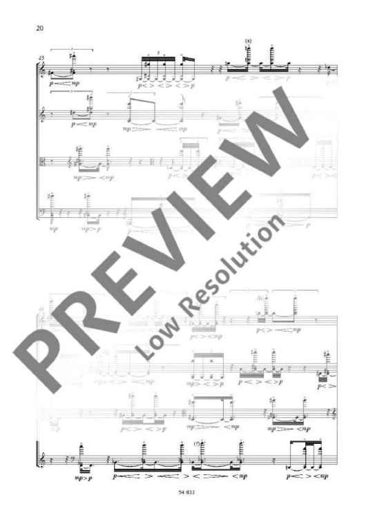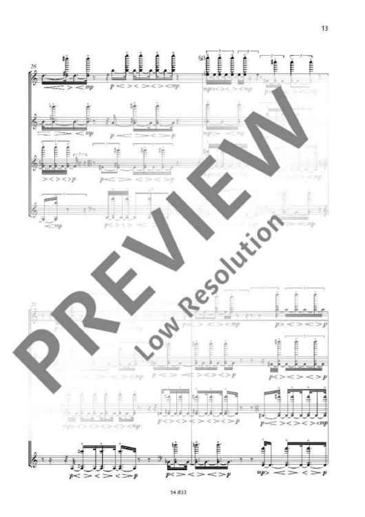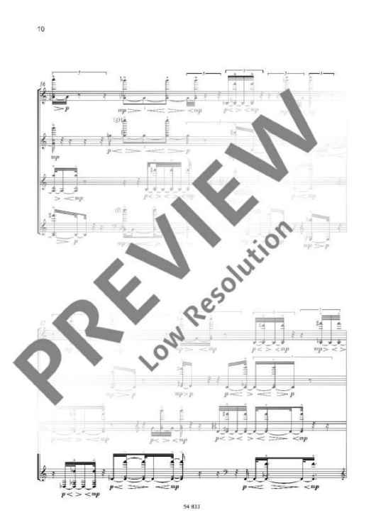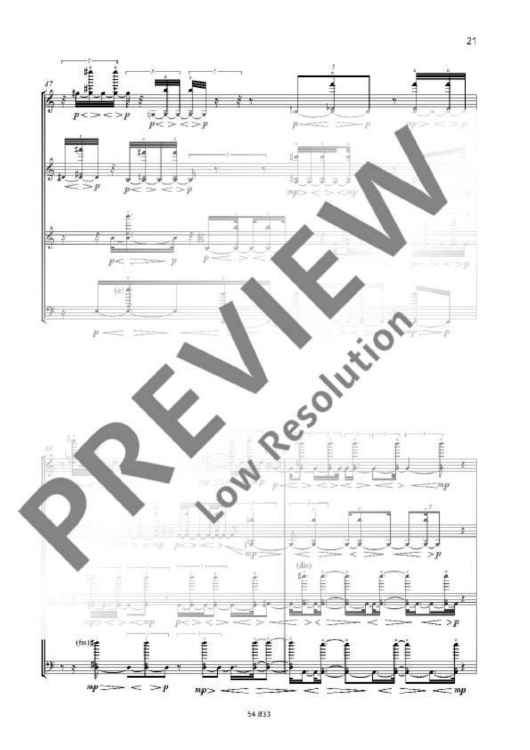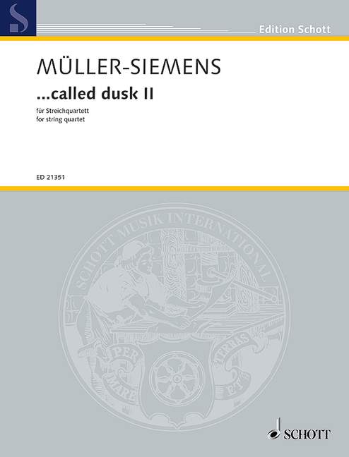 ...called dusk II for string quartet draws its inspiration from a line in Samuel Beckett’s short story Lessness: 'Figment dawn dispeller of figments and the other called dusk'. The work is a kind of double Chaconne, each part of which contains 26 chords based on specific permutations of fundamental notes and their harmonics. Each of the parts pass through alternating, harmonically contrasted planes, becoming entwined in the manner of a chimera through their rhythmic structure and dynamics. This intermittently produces a sort of ‘inner voice’ which runs through all four instruments. The fundamental notes and harmonics separate during the progress of the composition, becoming independent and then disintegrating. The consonant harmony resulting from the amalgamation of the two planes ultimately collapses into a rigid motor-like linearity. Detlev Müller-Siemens
