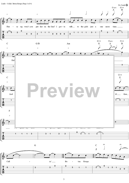 Digital Sheet Music for Callin' Baton Rouge by Garth Brooks, Dennis Linde scored for Easy Guitar Tab/Vocal; id:250699