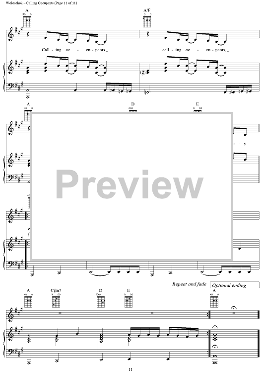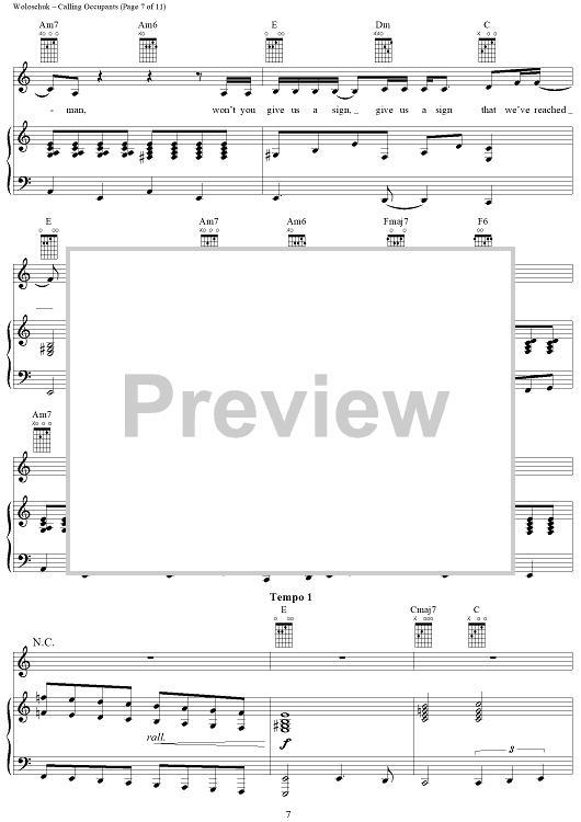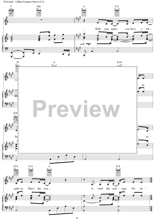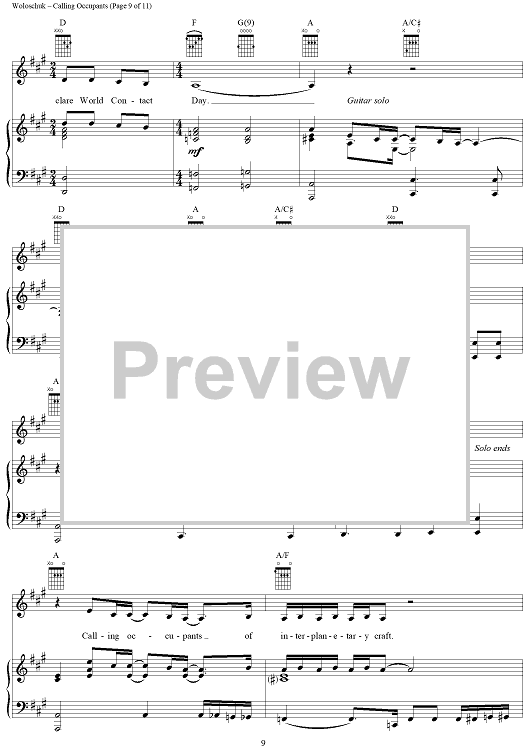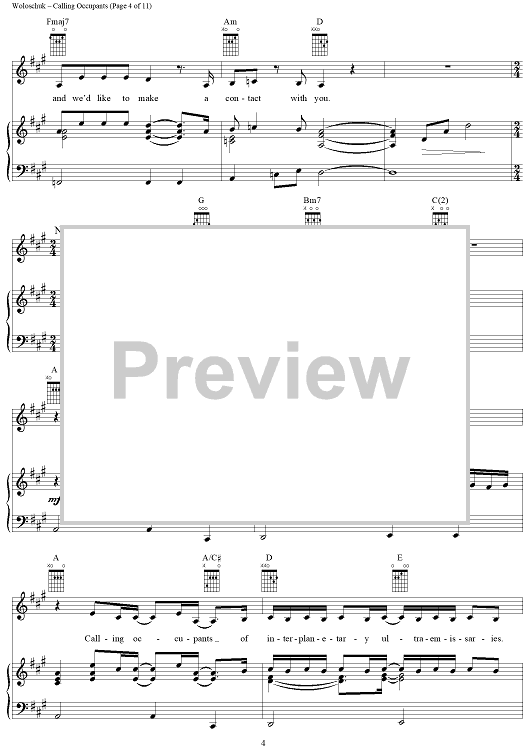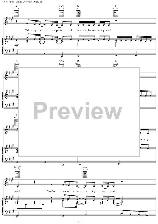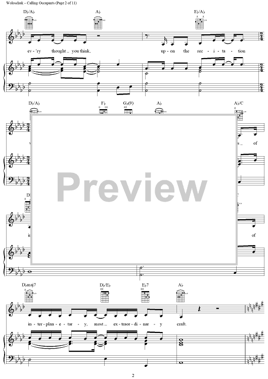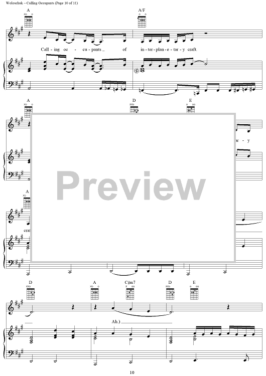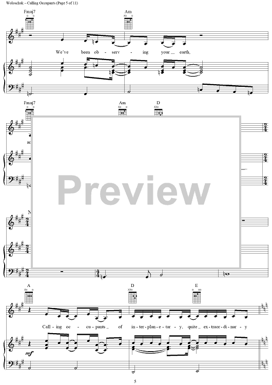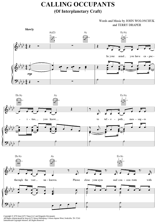 Digital Sheet Music for Calling Occupants (Of Interplanetary Craft) by The Carpenters, Terry Draper, John Woloschuk scored for Piano/Vocal/Chords; id:367267
