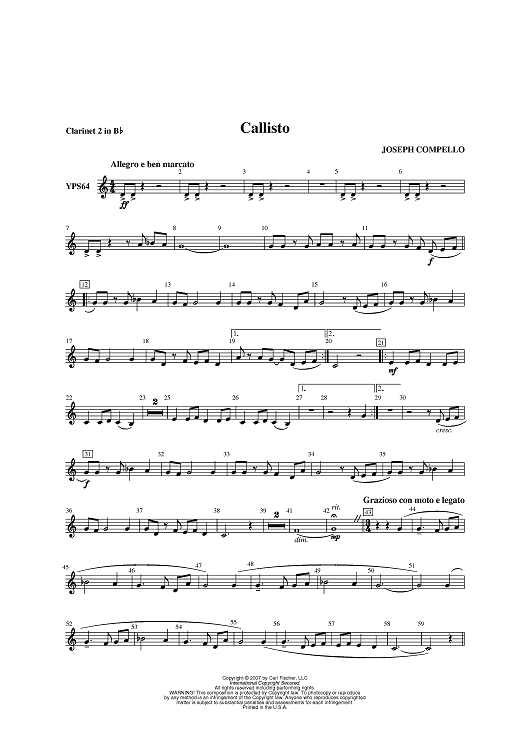 Digital Sheet Music for Callisto - Clarinet 2 in B-flat by Joseph Compello scored for Concert Band; id:407782