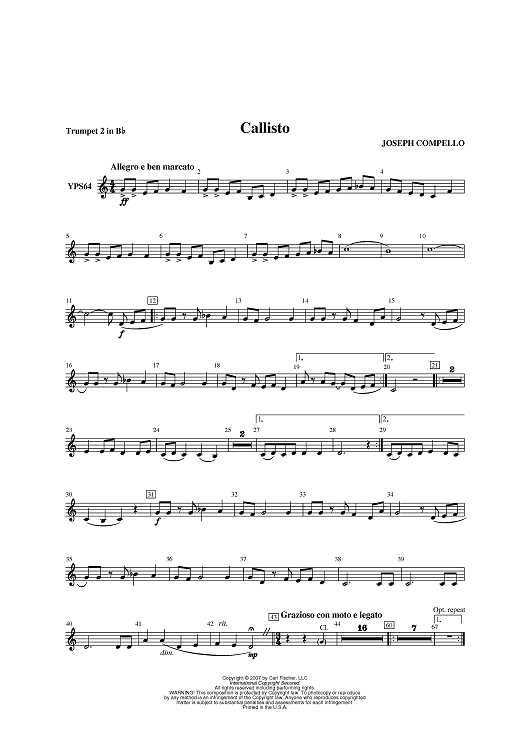 "Callisto - Trumpet 2 in B-flat" Sheet Music by Joseph Compello