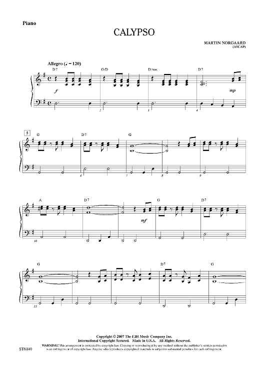 "Calypso - Piano" Sheet Music by Martin Norgaard