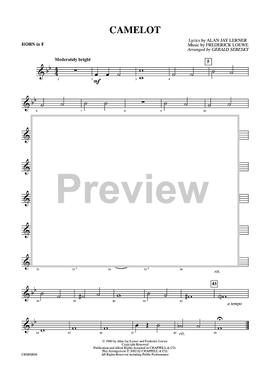 "Camelot - Horn in F" Sheet Music by Frederick Loewe
