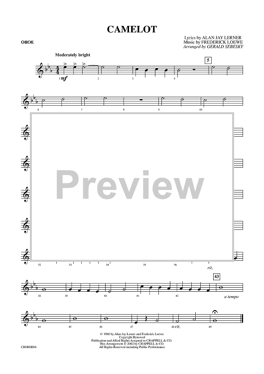 "Camelot - Oboe" Sheet Music by Frederick Loewe