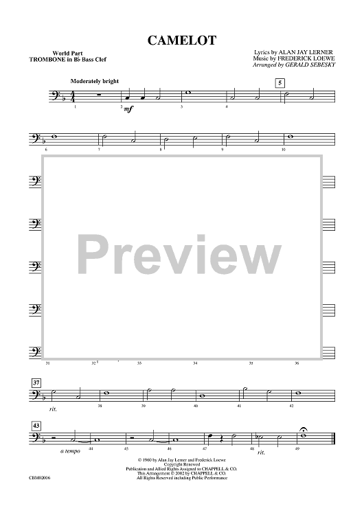 "Camelot - Trombone in B-flat BC" Sheet Music by Frederick Loewe