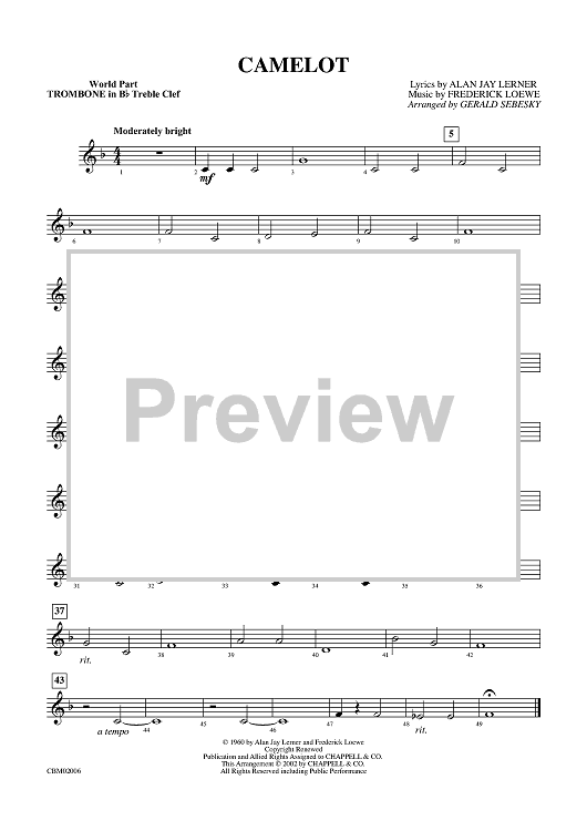 "Camelot - Trombone in B-flat TC" Sheet Music by Frederick Loewe