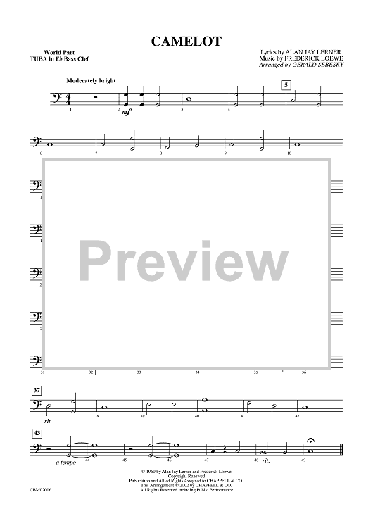 "Camelot - Tuba in E-flat BC" Sheet Music by Frederick Loewe