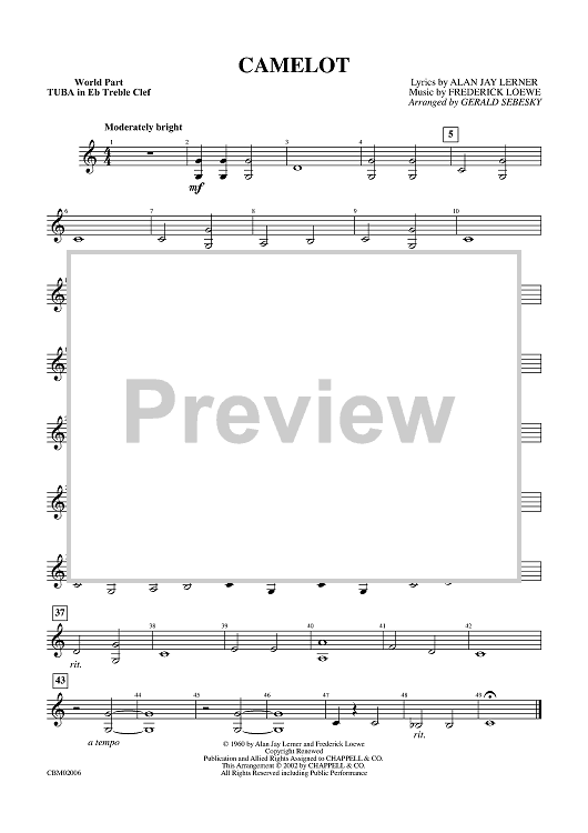 "Camelot - Tuba in E-flat TC" Sheet Music by Frederick Loewe
