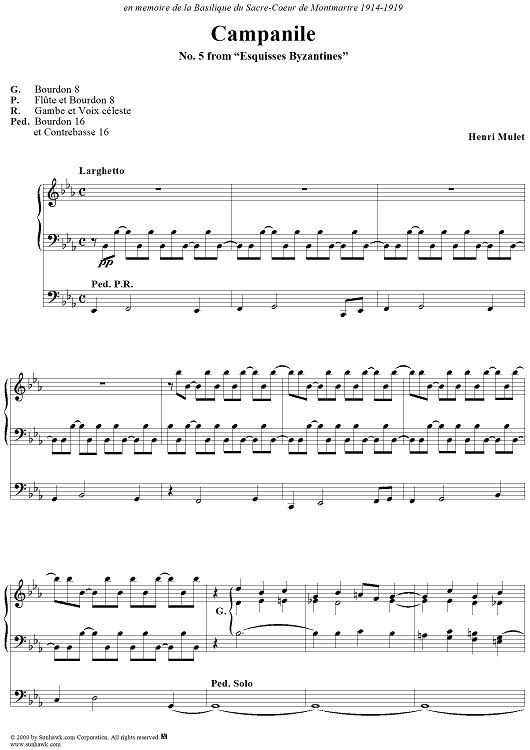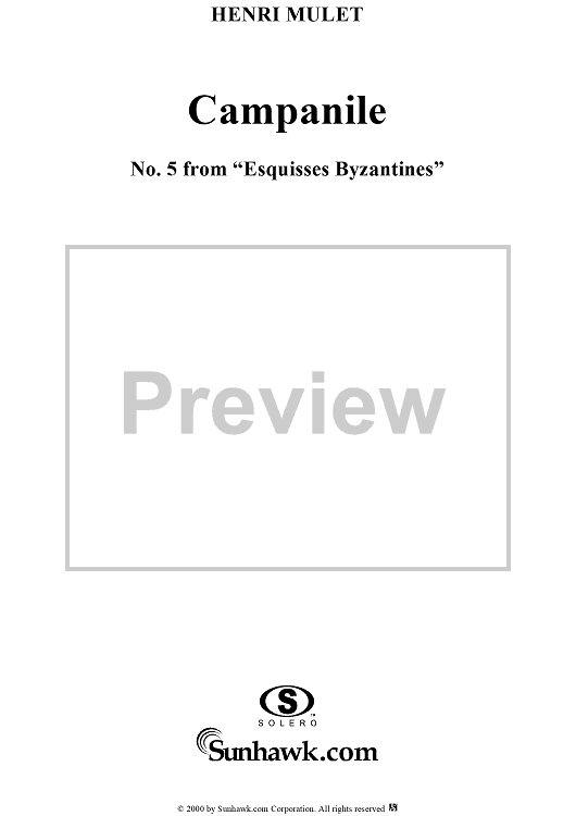 Digital Sheet Music for Campanile, No. 5 from "Esquisses Byzantines" by Henri Mulet scored for Organ Solo; id:252776