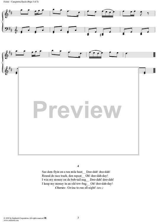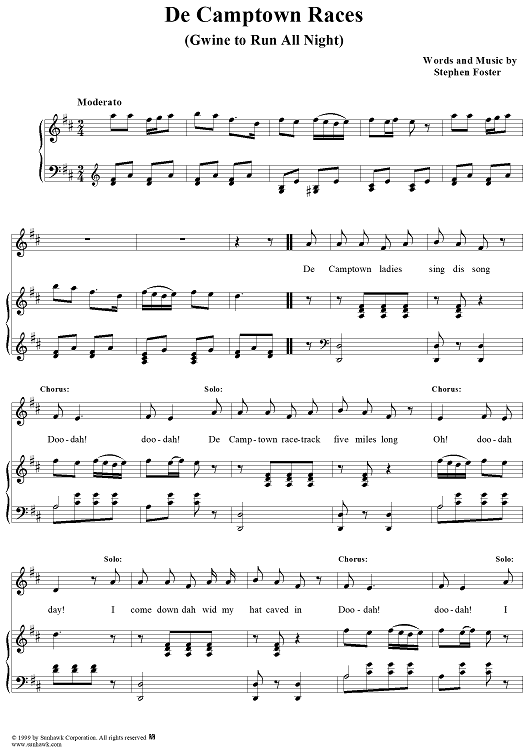 Digital Sheet Music for Camptown Races by Stephen Foster scored for Four-part Mixed Chorus/Piano; id:113889