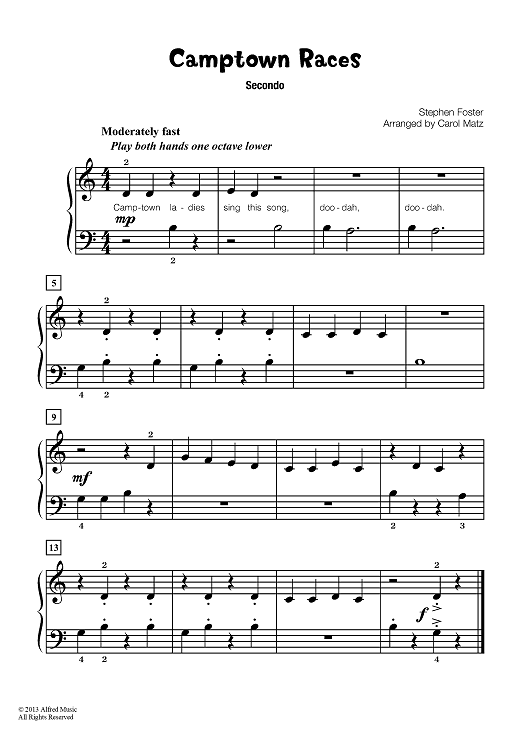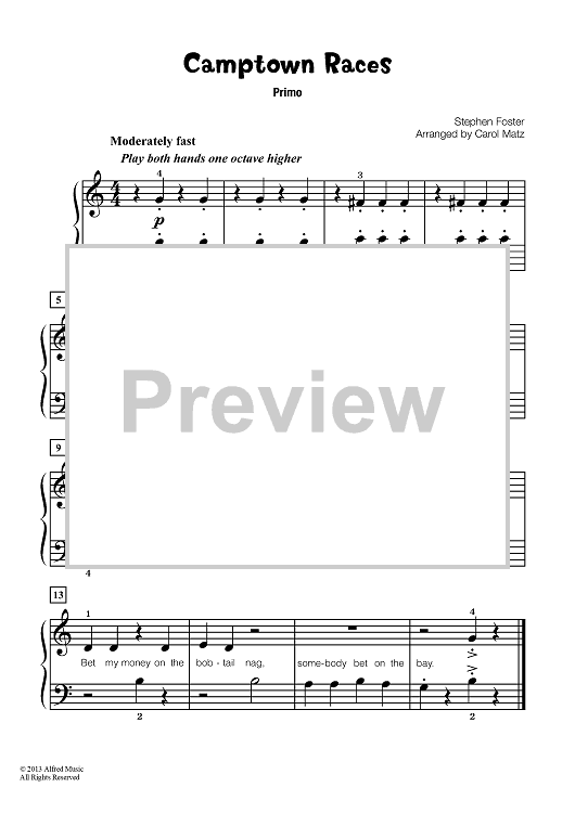 Digital Sheet Music for Camptown Races by Carol Matz, Stephen Foster scored for 1 Piano, 4 Hands; id:451478