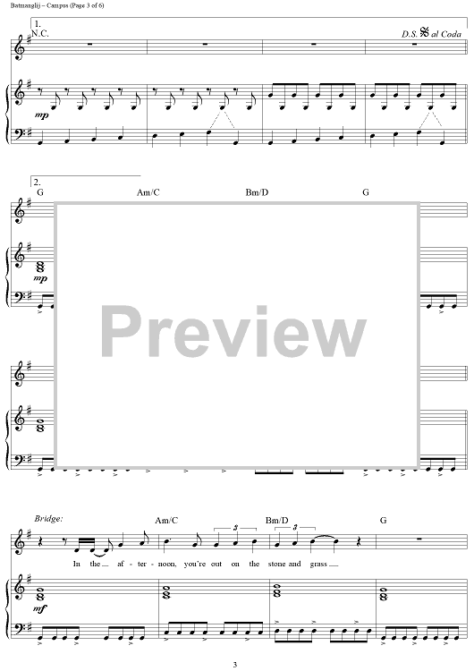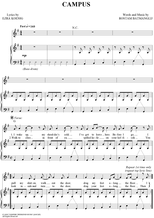 Digital Sheet Music for Campus by Vampire Weekend, Ezra Koenig, Rostam Batmanglij scored for Piano/Vocal/Chords; id:417680