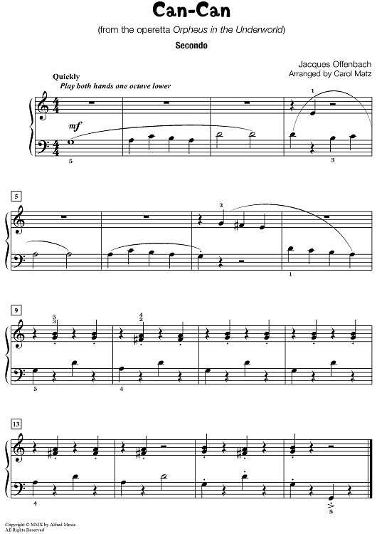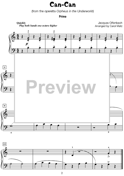 Digital Sheet Music for Can-Can by Carol Matz, Jacques Offenbach scored for 1 Piano, 4 Hands; id:496861