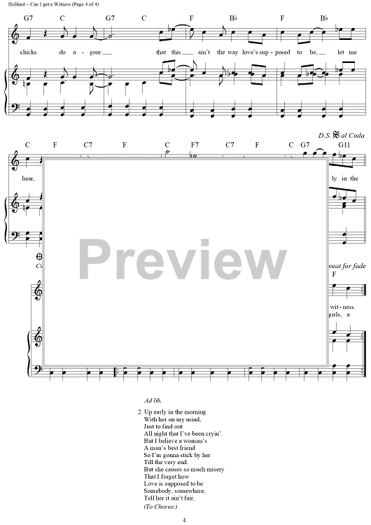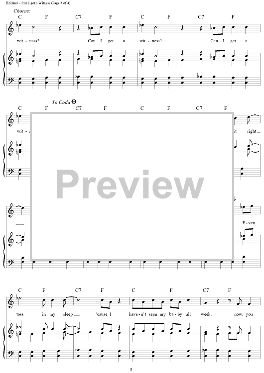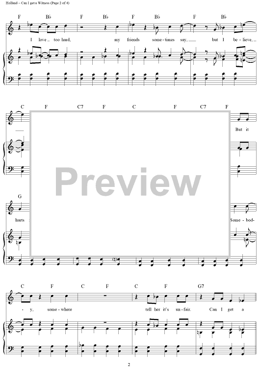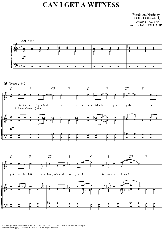 Digital Sheet Music for Can I Get a Witness by Marvin Gaye, Lamont Dozier, Brian Holland, Eddie Holland scored for Piano/Vocal/Chords; id:364034