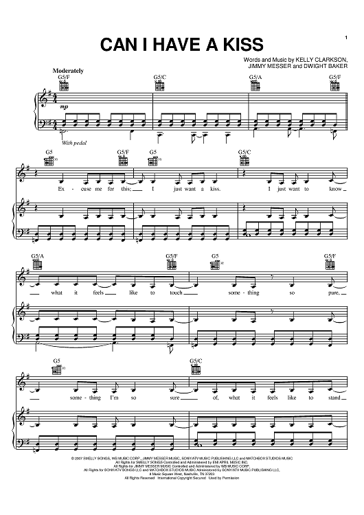 Digital Sheet Music for Can I Have A Kiss by Jimmy Messer, Dwight Baker, Kelly Clarkson scored for Piano/Vocal/Chords; id:402791