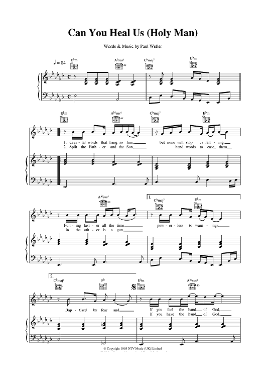 Digital Sheet Music for Can You Heal Us (Holy Man) by Paul Weller scored for Piano/Vocal/Chords; id:375887