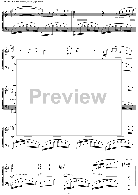 Digital Sheet Music for Can You Read My Mind? by Leslie Bricusse, Dan Coates, John Williams scored for Piano Solo; id:263750