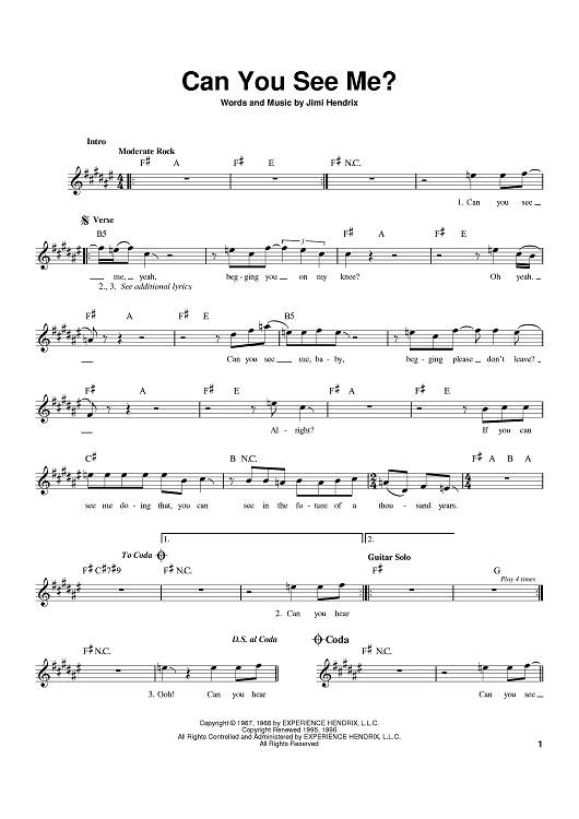 "Can You See Me?" Sheet Music by Jimi Hendrix