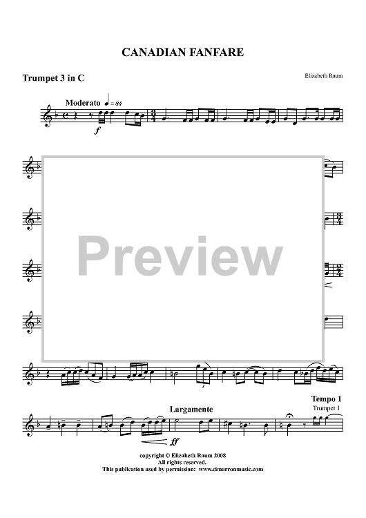 "Canadian Fanfare - Trumpet 3 in Bb" Sheet Music by Elizabeth Raum