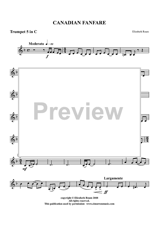 Digital Sheet Music for Canadian Fanfare - Trumpet 5 in Bb by Elizabeth Raum scored for Trumpet Ensemble; id:413944