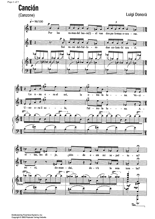 Digital Sheet Music for Cancion/Canzone - Score by , Luigi Donorà scored for Soprano or Tenor/Piano; id:349944