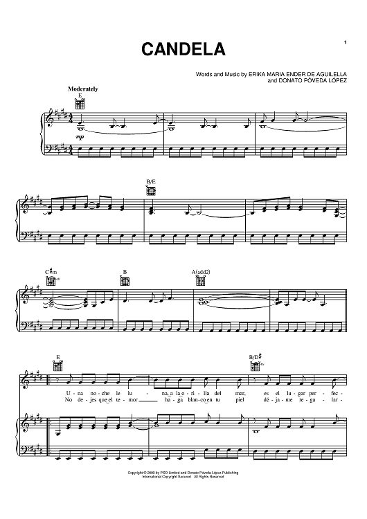 Digital Sheet Music for Candela by Donato Poveda Lopez, Erika Ender scored for Piano/Vocal/Chords; id:371146