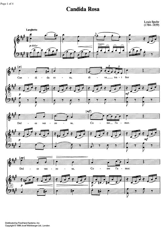 Digital Sheet Music for Candida Rosa by Louis Ludwig Spohr scored for Soprano/Piano; id:332574