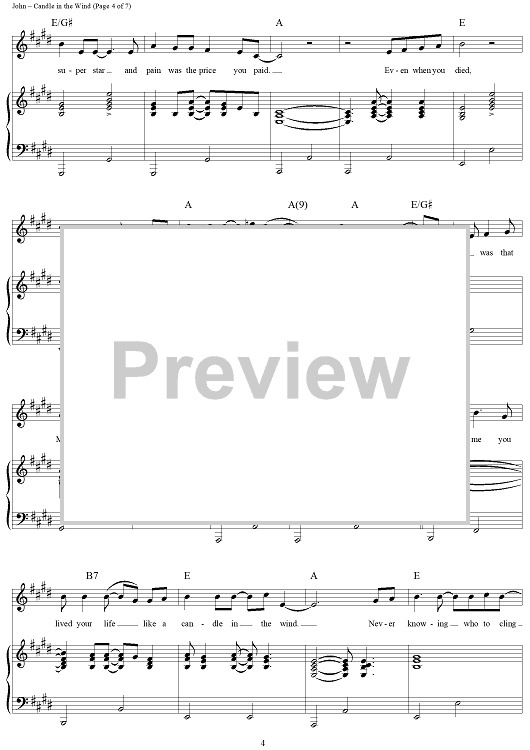 Digital Sheet Music for Candle In The Wind by Elton John, Bernie Taupin, Paul Honey scored for Piano/Vocal/Chords; id:284115