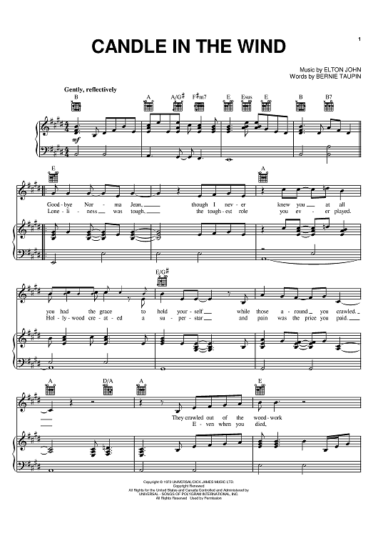 Digital Sheet Music for Candle In The Wind by Elton John, Bernie Taupin scored for Piano/Vocal/Chords; id:383713