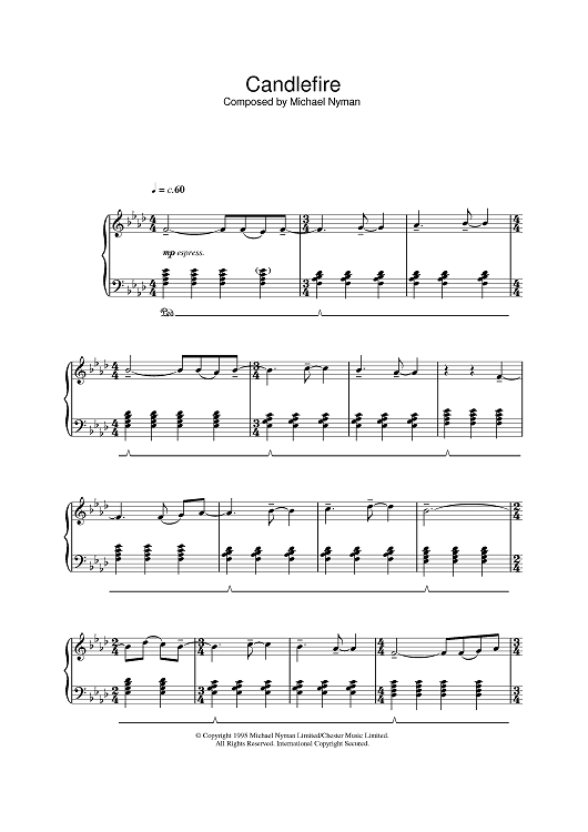 Digital Sheet Music for Candlefire by Michael Nyman scored for Piano; id:387178
