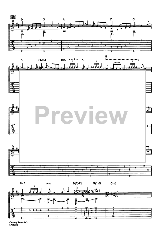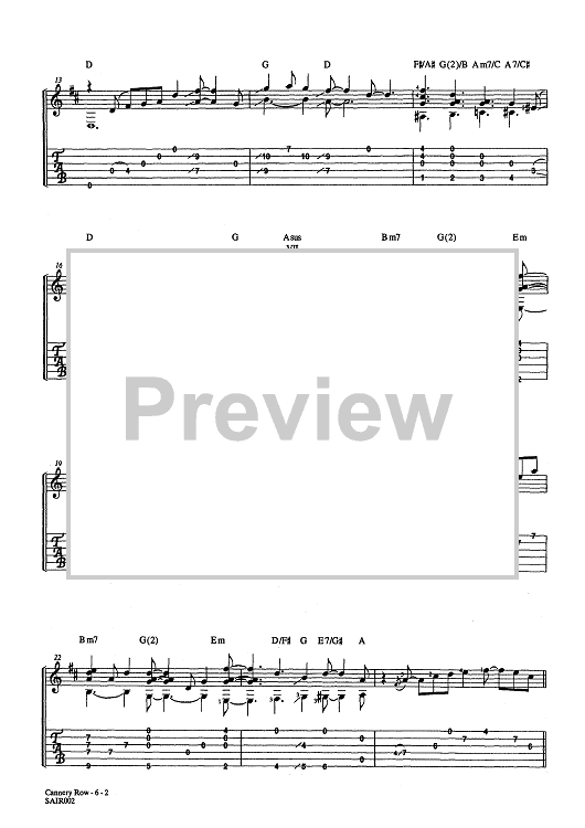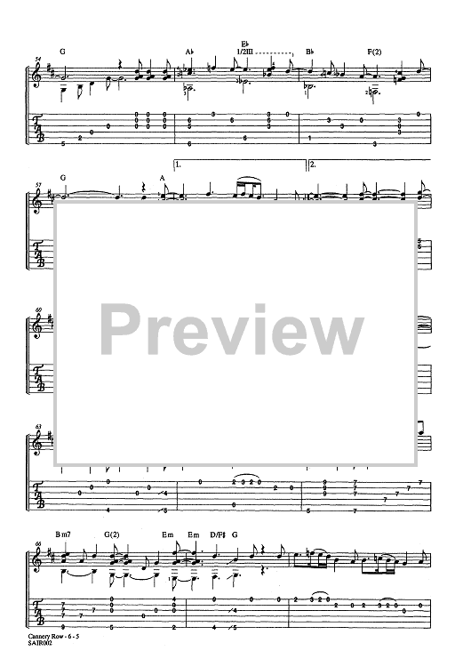Digital Sheet Music for Cannery Row (No MP3) by , Laurence Juber scored for Guitar Tab; id:452174