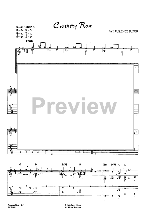 Digital Sheet Music for Cannery Row (With Embedded Audio) by , Laurence Juber scored for Guitar Tab; id:452188