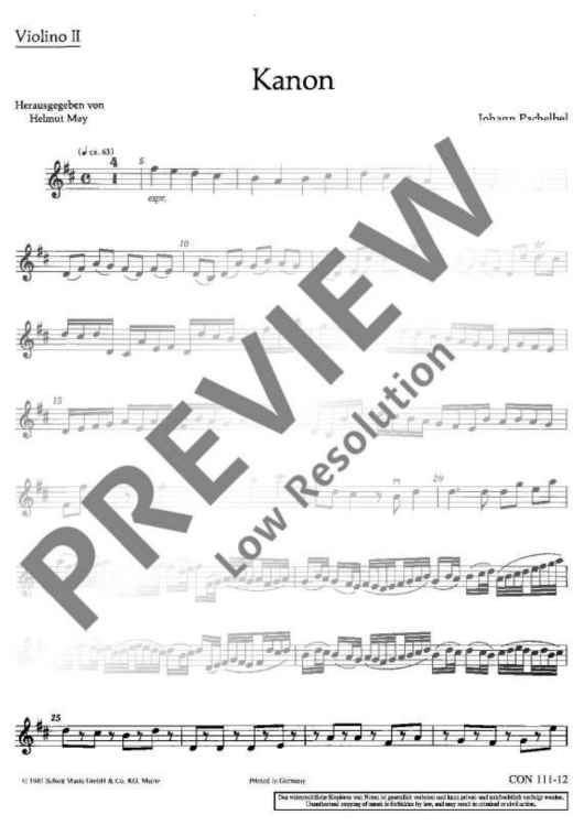 "Canon D major - Violin II" Sheet Music by Johann Pachelbel