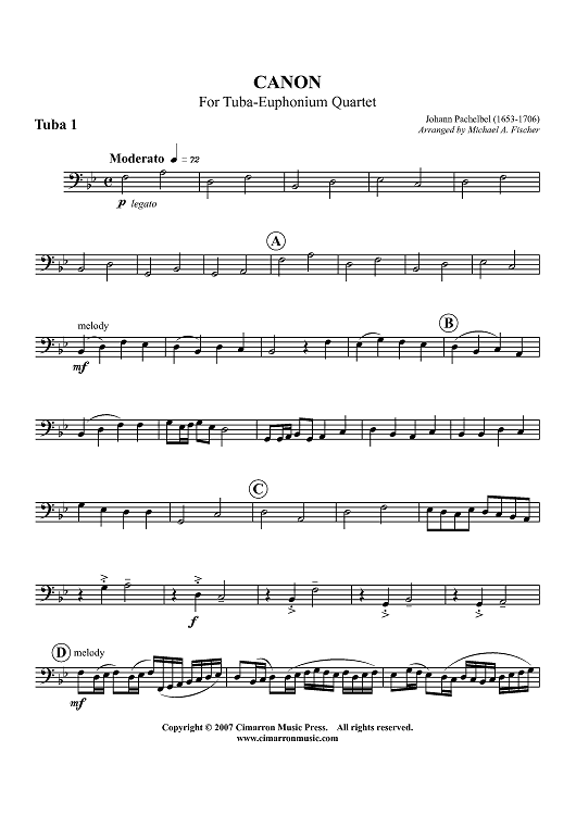 Digital Sheet Music for Canon - For Tuba-Euphonium Quartet - Tuba 1 by Johann Pachelbel, Michael A. Fischer scored for Tuba Quartet; id:413531