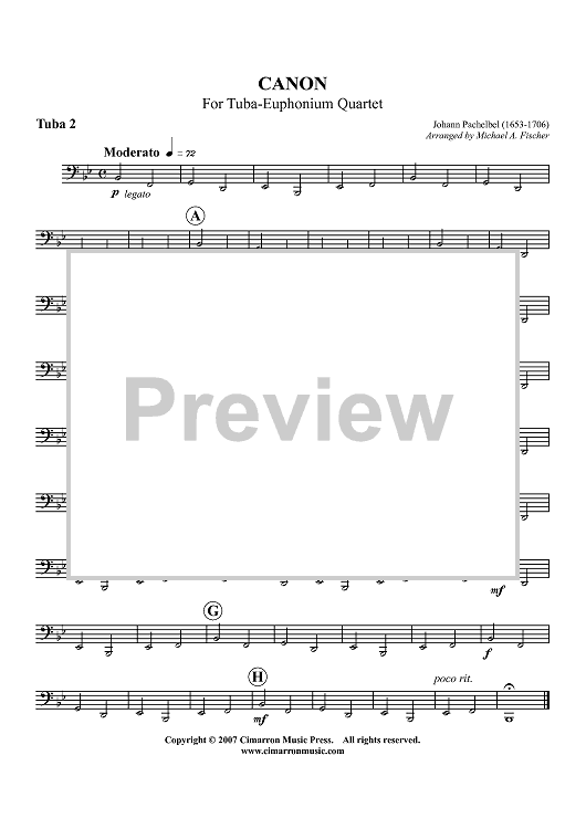 Digital Sheet Music for Canon - For Tuba-Euphonium Quartet - Tuba 2 by Johann Pachelbel, Michael A. Fischer scored for Tuba Quartet; id:413532