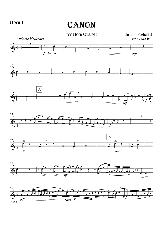 "Canon - Horn 1" Sheet Music by Johann Pachelbel