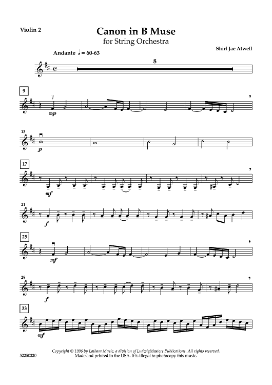 Digital Sheet Music for Canon in B Muse - Violin 2 by Shirl Jae Atwell scored for String Orchestra; id:458582